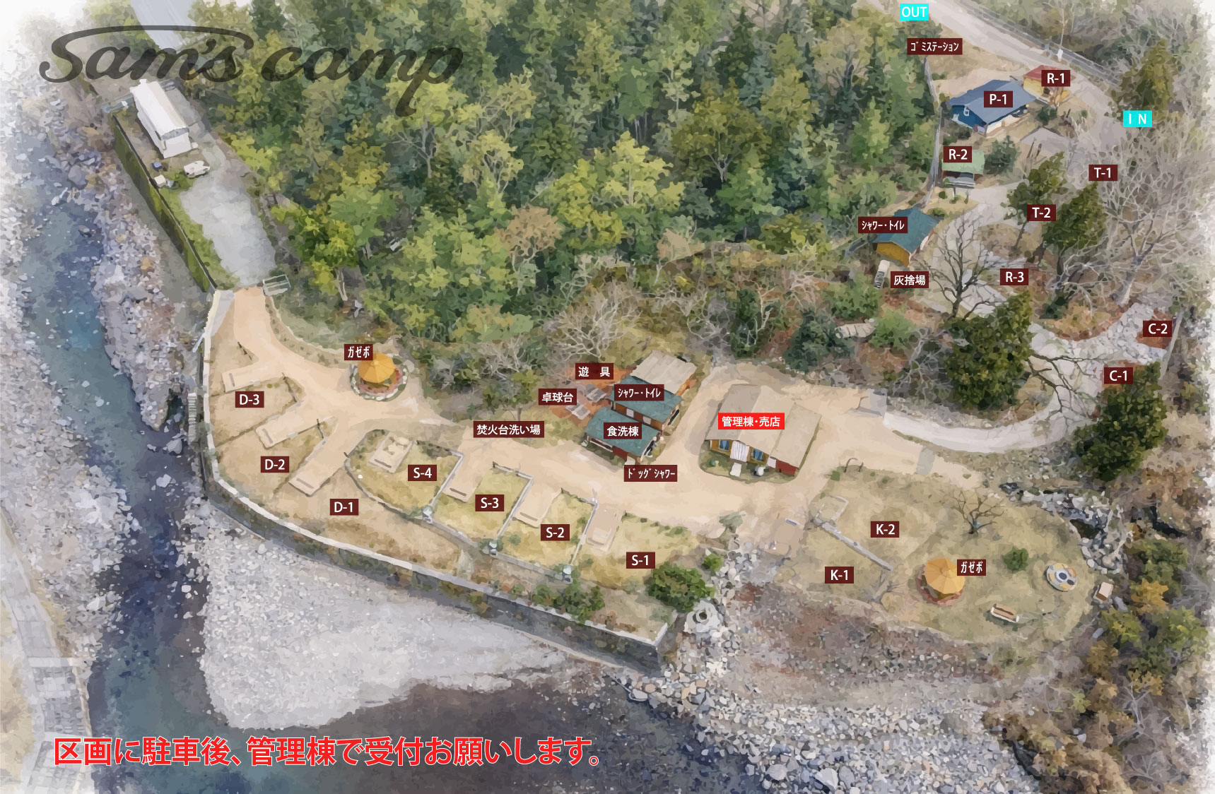 Sam's campは国道311号線からすぐの、里山と自然が融合した好立地のキャンプ場。